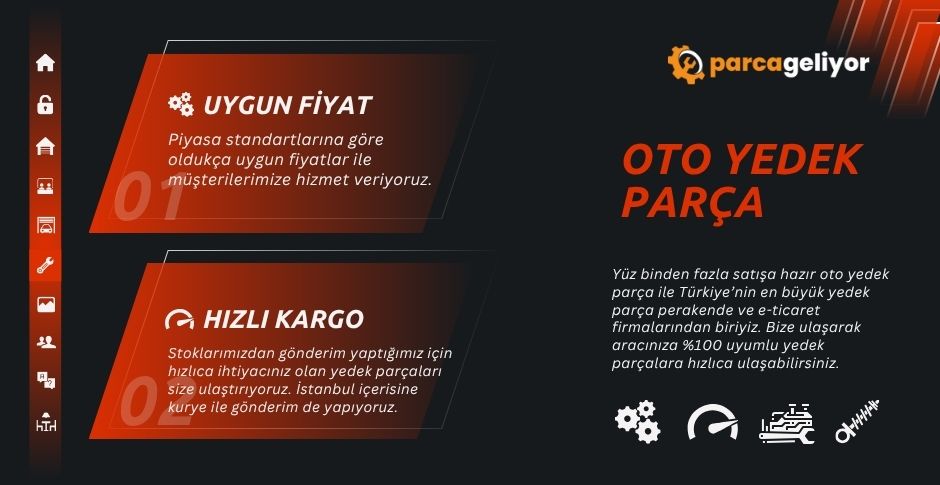 Oto yedek parça alışverişinde güvenilir bir firma bulmak hem aracınızın performansı hem de bütçeniz açısından kritik öneme sahiptir. Parça Geliyor, yıllardır sektörde edindiği tecrübe ve güçlü stok kapasitesi ile araç sahiplerine hızlı, doğru ve kaliteli çözümler sunan güvenilir bir yedek parça firmasıdır. İstanbul İkitelli Organize Sanayi Bölgesi, Bağcılar Güngören Sanayi Sitesi, 14. Blok, No: 2-4, Başakşehir’de bulunan yedek parça dükkanımızdan birebir ürün alabilir veya web sitemiz üzerinden kolayca sipariş verebilirsiniz. Kendi stoğumuzda bulunan ürünleri aynı gün hızlı kargo ile gönderiyor, böylece aracınızın ihtiyacını hızlı bir şekilde gideriyoruz. Aşağıdaki listede satışını yaptığımız ürünlerin isimleri yer almaktadır.